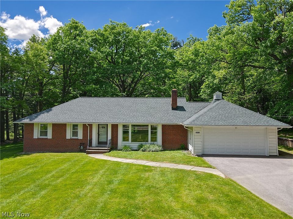 Welcome to this lovely ranch style home that is situated on 2.5 acres with mature trees and a picturesque backyard. Great opportunity for first time home buyers or empty nesters looking to downsize and enjoy the ease of first floor living! The chef's kitchen includes white cabinetry and lovely countertops. The spacious family room features a wood burning fireplace with ample light from the wall of windows. Entertaining is easy with the open space of the living and dining areas. Many other features including tap into city water, waterproof basement (2024), newer roof (2018), furnace (2019) and more!! Call agent for your appointment today!