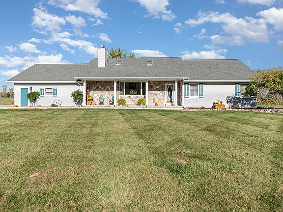 ELEGANT COUNTRY LIVING ON NEARLY 5 ACRES- ONE YEAR HOME WARRANTY INCLUDED -Experience peaceful country living with modern comfort in this stunning 3-bedroom, 2.5 half bath ranch on a 4.85 acre lot, set back from the road, in the sought-after Freeland School District. Featuring nearly 3,000 sq. ft. of finished space, this home offers open-concept living with vaulted ceilings, skylights, and a bright, welcoming atmosphere. Enjoy a chef's kitchen with a 9' island and stainless steel appliances, a walk-out basement, and main-level access throughout. Step outside to your private half-acre, 30 foot, spring-fed pond stocked with warmouth fish, bullfrogs and pet turtles, a 40' x 30' pole barn, two covered patios and beautifully landscaped grounds with apple trees and grapevines. Recent upgrades include remodeled baths (2023) include a deep soaking tub, new furnace (2022), doors (2023), new reverse osmosis system (2024) with a Lifetime Warranty, hot water tank (2020) with a Lifetime Warranty, new flooring (2023), Roof (2016), Septic Tank cleaned in 2022, an oversized fully insulated 2.5 car garage, one set of hot and cold faucets in the garage, in wall audio, central vac, Lorex security system and high end touches throughout. Bedroom, bathroom and hallway door frames are extra wide for wheelchair access. This property combines luxury, practicality, and privacy just minutes from Saginaw and Midland.