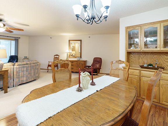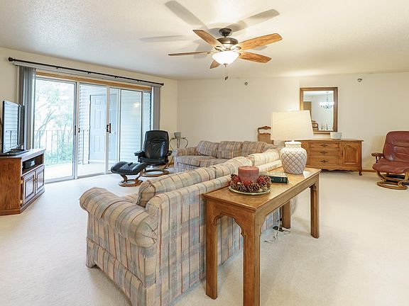 Welcome to this spacious two-bedroom, two-bathroom 55+ condo offering comfort, convenience, and plenty of extras. Inside, you’ll find a bright kitchen with quartz countertops and oak cabinetry perfect for keeping things organized. The dining area features easy-care laminate flooring, and built-in hutch-style storage—while the adjacent living room is warm and inviting. Off the living space is a den that could easily serve as a home office, craft space, or even a possible third bedroom. The primary suite (12’ x 16’) includes two double closets and a private en-suite with a walk-in shower, while the second full bathroom features a one-piece shower/tub combo. Laundry is located right in the unit, tucked conveniently into the hallway. Additional perks include a concrete deck for relaxing outdoors, a two-stall garage on the main (ground) level, and a separate storage room with built-in shelving. The condo association fee is currently $300/month (set to become $350 in January) and covers the water bill along with standard association amenities. This is low-maintenance living at its best—plenty of space, smart storage, and the convenience of condo living in a great location. The sellers have hired Suter to service the HVAC over the years so that is well maintained, and this condo offers peace of mind. You can lock the door, turn off the water and head to your tropical destination!