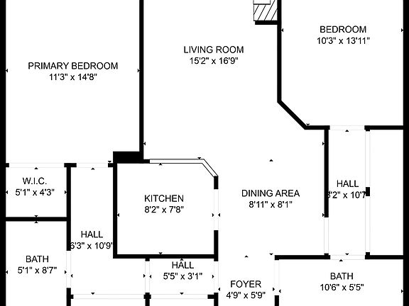 Unit offers approximately 1,100 square feet including balcony of well-designed living space with 2 bedrooms and 2 bathrooms in a bright, open layout.