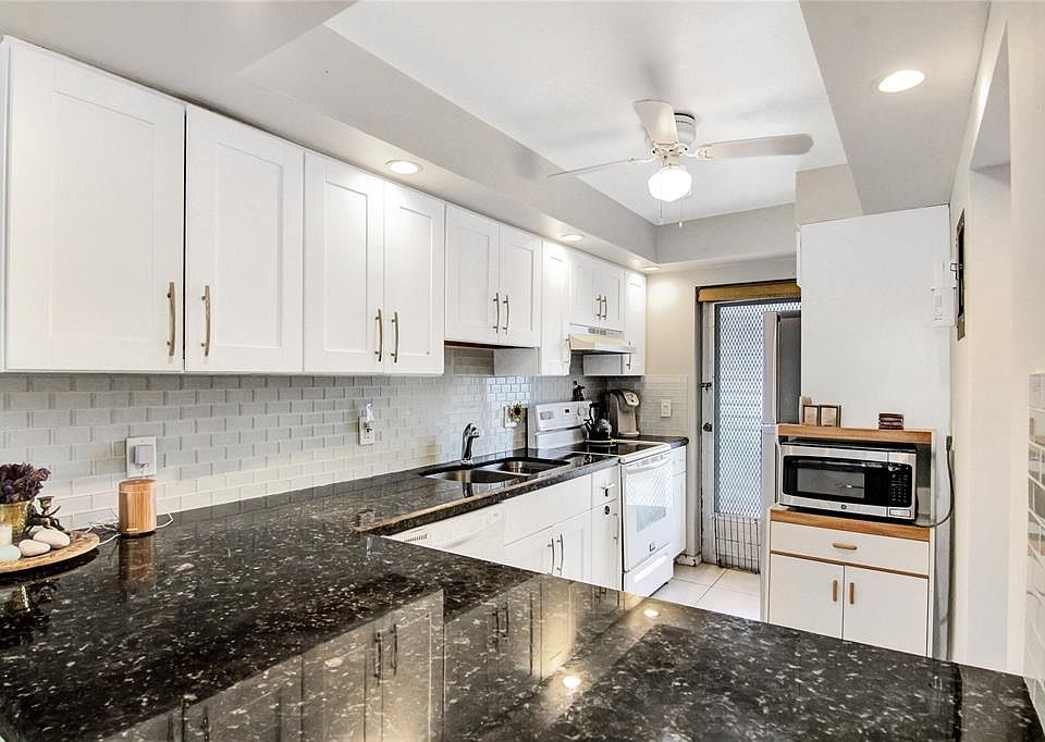 Sought after Lighthouse Point Plaza Condo, 2 Bedroom, 2 Bath on the first floor with a screened in Patio. The kitchen is modern open and upgraded and the bedrooms have walkin closets. There is tile flooring through out the unit. This cozy condo comes with a storage unit, common laundry, hurricane shutters and one assigned parking spot. Boat dockage with ocean access is available on a waitlist with the association. A/C 2022. The Association allows rentals after 2 years, and financing requires 640 credit sccore with 10% down. Features a beautiful pool, clubhouse, gym, and shuffleboard. The condo backs up to Dan Witt Park with pickleball courts, basketball courts and a playground. Centrally located to Hillsboro Beach 4.5 miles away. Plenty of shops and restaurants for entertainment and fun.