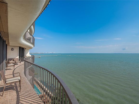 Recently renovated fabulous waterfront condo is situated by beautiful Corpus Christi Bay and prestigious Ocean Drive. Landmark condo is an upscale smaller community. This fourth floor end unit offers expansive views of CC Bay and the city skyline. Owners will enjoy sunrises and moonrises over the water in addition to watching the marine life and exceptional bird watching. Sliding doors and floor to ceiling windows offer water views from the majority of the condo. The covered balcony wraps around the building for additional outdoor living space. Solid wood double entry doors lead to gracious foyer with intimate living area just off the foyer. Hallway off foyer gives private access to very large living area (could be third bedroom) with hall full bath. Living area features water views and stunning electric fireplace as focal points. Smartly designed chef's kitchen with custom light wood cabinetry, recent stainless steel appliances (including refrigerator), granite counters and tile flooring. Kitchen opens to formal dining room located between living area and amazing primary suite. Situated on the corner the huge primary suite boasts electric two sided fireplace which creates separate living area with wet bar within the suite. Grand walkin closet and luxurious spa like bath with dual lavatories, granite counters, easy access shower complete the suite. Other amenities include private third bedroom with ensuite bath. Lots of storage space in the unit but also climate controlled storage room on lower level. Landmark amenities include 24 hour security guards, pool at water's edge, remodeled gym and party room, three assigned parking spaces in covered garage. Landmark is one of the few condos that ALLOW PETS. Convenient location to hospitals, restaurants, marina, downtown, TAMU-CC, NAS, waterfront parks. Padre Island beaches and warm waters of the gulf just 15 mins away! Coastal living at it's finest at the Landmark! This one is move in ready.