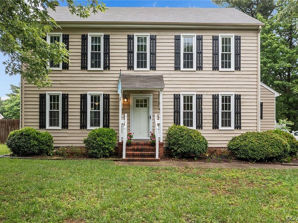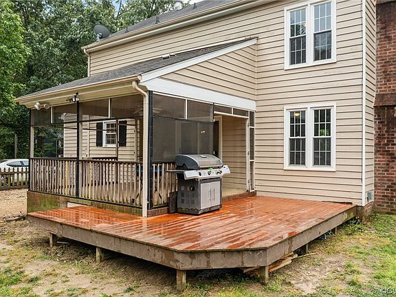 Full 4 bedroom, 2 ½ bath home in heart of Chester! Price AND location–you’re going to love both! Large corner lot w/deck and covered porch in back yard, could be easily screened. Firepit in center of the fenced backyard for your enjoyment. Downstairs you’ll find gorgeous, unique hardwood floors. The eat-in kitchen has brand new countertops and lots of space for your family chef. Of course there is a pantry closet too! Kitchen opens to the family room, w/a wood burning fireplace. Sliding glass doors make it light and bright, and they open to the covered porch in the back. With an additional living room and dining room, there is living space for all your needs. There is a side door with a laundry/utility room and half bath just inside before kitchen. Upstairs you have brand new carpet (including stairs) in all 4 bedrooms. There is not a tiny bedroom in the home–all spacious! Primary bedroom has an ensuite bath and walk in closet. Outside has a huge yard, fenced in the back with a detached shed for additional storage. Paved double driveway gives you lots of parking! Close to shops, restaurants, and major roads. This home is ready for new owners! Set up your showing appt today!