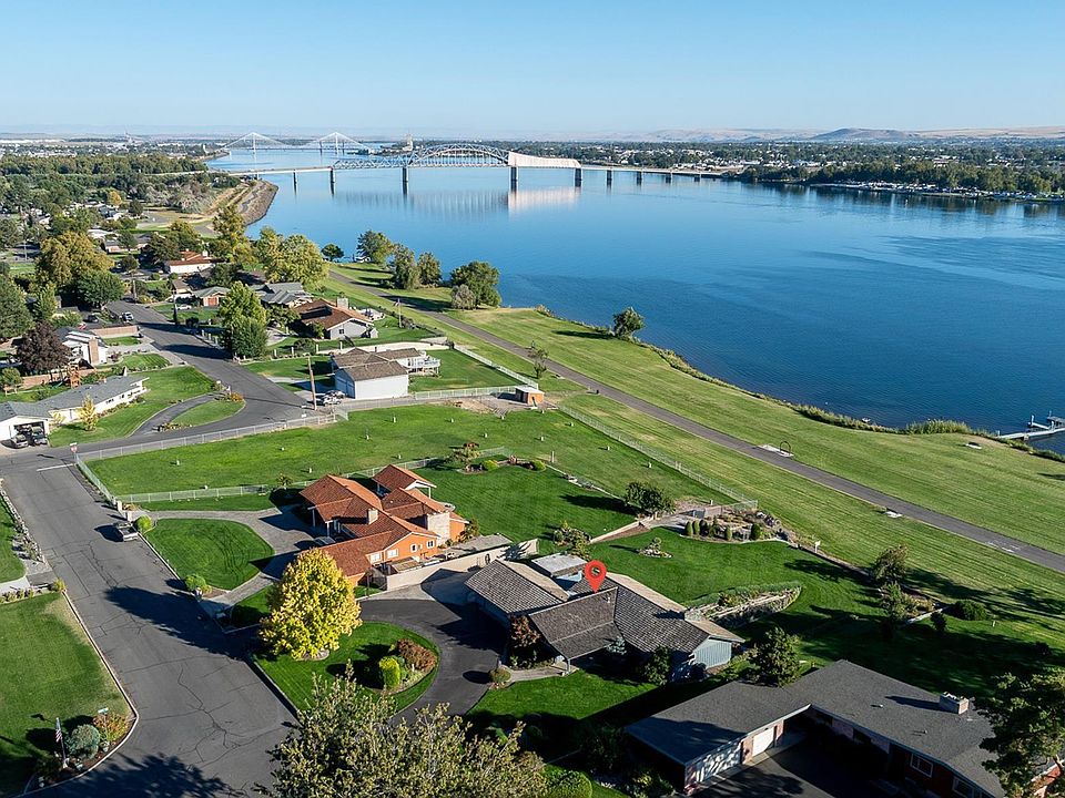 MLS# 279345 Truly the BEST stretch of River Properties in the Tri Cities right here! Unobstructed views of the Columbia River! Home to the Hydroplane Races and front seat for the 4th of July! Entertain all your friends and family here! One owner home. Dining room, Great Room, Kitchen, Study/Office all overlook the beautiful view. The lawn is beautifully landscaped, with the front circular driveway, charming breezeway from the garage to the side entrance, plenty of concrete patio for outdoor furniture/dining and relaxing, nice storage shed, garden space, and a gently sloping backyard for easy access to the bike/walking path. PRIVATE SHARED DOCK, TOO! Area of estate-styled homes that makes this especially valuable. Vaulted ceilings on main floor, along with 3 of the 4 bedrooms. Laundry room is also on the main floor. Lower level has an awesome built-in bar area, large family room with fireplace, 3/4 bath, the 4th bedroom, mechanical room and about 800 s.f. of unfinished/shelved storage. Lower level has outside entrance. Tucked away, very private location! Sit, relax and watch all the activity on the river, especially the beautiful riverboats that go by! A life-style of it's own!