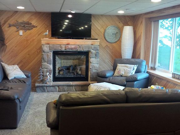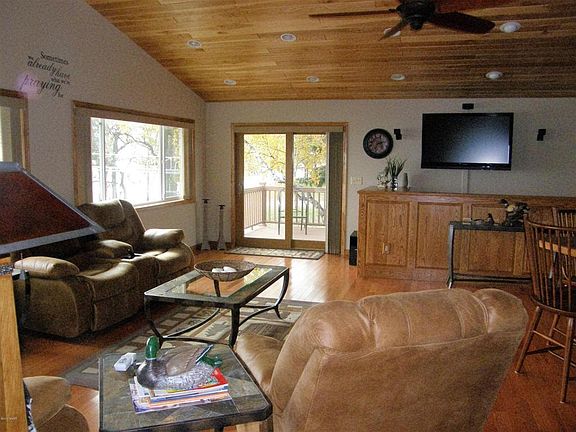 120 feet on Rush Lake! Completely updated year round home features impressive great room with vaulted pine ceilings, wood floors and a wall of windows to the lake offering tons of natural light and amazing views plus the upgraded kitchen with custom cabinets, stainless steel appliances and large center island offers open concept living. Main floor master suite has large windows and lake view with walk-in closet and private full bath with beautiful ceramic tile work. Walkout lower level boasts large family room with gas fireplace, a second full kitchen with tile floor recreation area and a new screened-in lakeside porch offers plenty of room for you and yours guests.