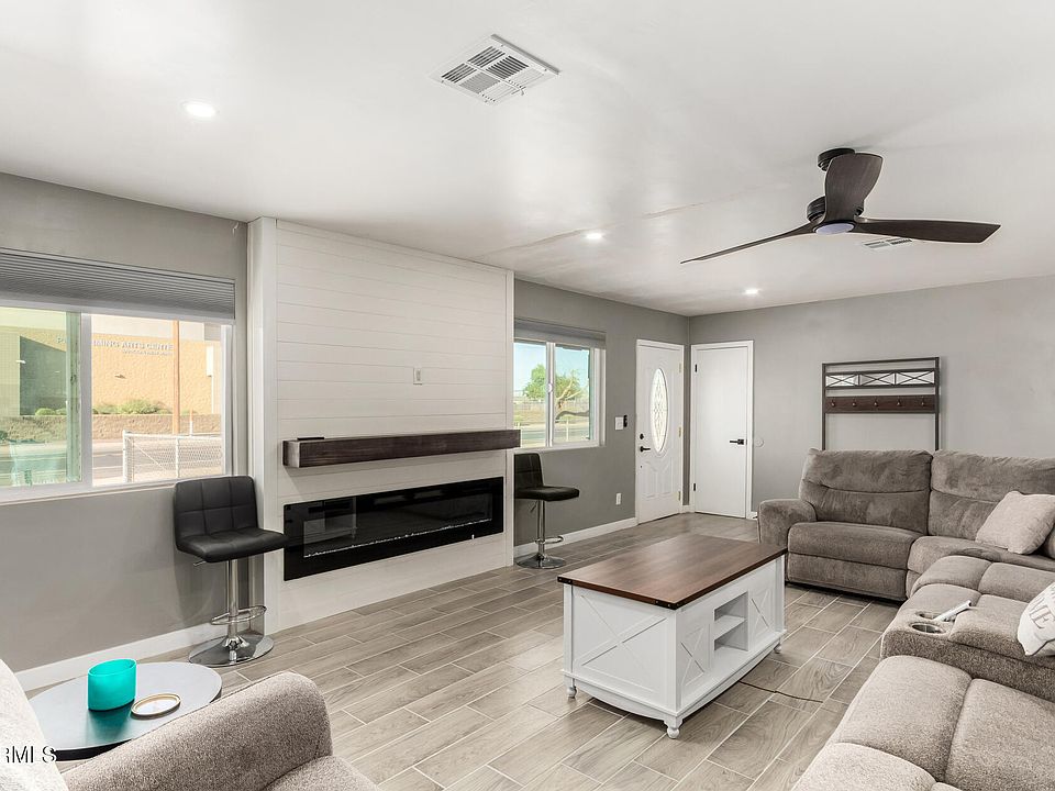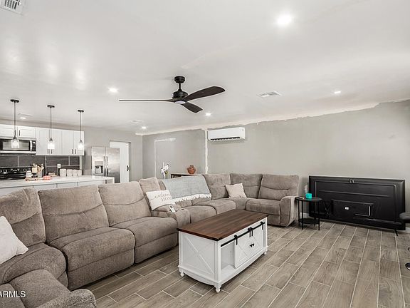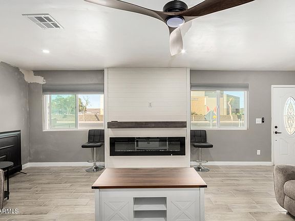 Hurry! Single-story home in the heart of Maricopa! Set on a fully fenced property, this residence provides blank canvas front & back yards. Delightful interior features wood-look tile floors, thick baseboards, & neutral palette enhanced by stylish light fixtures. A cozy fireplace anchors the spacious living area! Open-concept kitchen has white cabinetry, dark backsplash complementing the quartz counters, SS appliances, & a center island w/breakfast bar. The main bedroom offers a touch of luxury w/its elegant bathroom, complete w/floating dual-sink vanity, tiled shower, & walk-in closet. Enjoy relaxing evenings under the covered back patio, with plenty of room to design your dream outdoor space. Perfectly located near top-rated schools, shopping, dining, & easy freeway access. Don't wait!