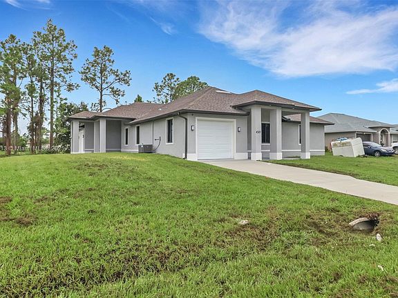 Brand-new 2025 duplex located in the highly sought-after southwest area of Lehigh Acres, perfectly positioned near Sunshine Blvd, Gunnery Rd, and Lee Blvd, providing convenient access to Fort Myers, shopping, dining, and top-rated schools. Each side of this thoughtfully designed property features 3 bedrooms, 2 bathrooms, and a 2-car garage with laundry, showcasing modern finishes, tile flooring throughout, impact-resistant windows, and an open-concept layout that creates a bright and welcoming atmosphere. The kitchens are equipped with sleek cabinetry and ample counter space, ideal for both everyday living and entertaining. Built with durable concrete block construction and a stylish stucco exterior, this duplex sits on an oversized 0.30-acre corner lot with separate entrances, 2car garage