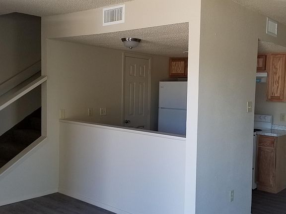 Townhome style 4-Plex with bedrooms and bathroom upstairs. Kitchen, dining and living room downstairs. Private fenced patio with a storage room with washer & dryer connections. Rent includes water & trash.