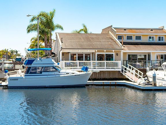 Remodeled Beautiful Single Story home in Mandalay Bay Waterfront home located 1 house from Main Channel with 2 beds and 2 baths, 2 boat docks 55' and 40'. Newer cabinetry hand grain painted and trim throughout, Cherry hardwood floors, B- fold Lanai doors to deck outdoor living. Open kitchen to living and dining area with walk in pantry, newer stainless appliances and granite breakfast counter that overlooks the water view and sunsets. Garage is equipped with built in cabinets and pebble flooring. Surround sound to enhance the relaxation and A/C. Don't miss this Beauty!