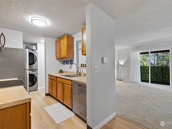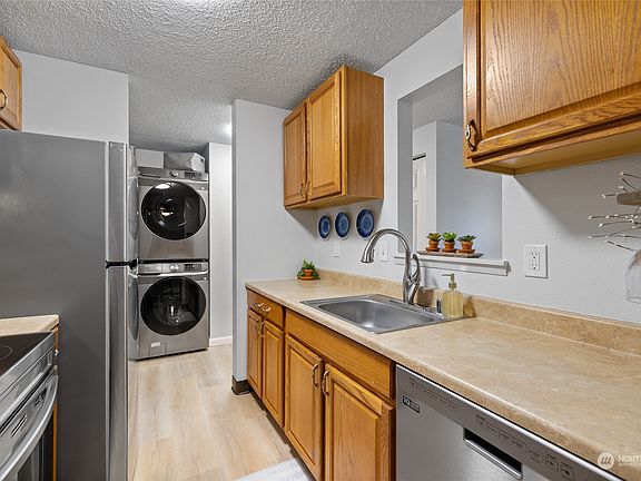 This refreshed condo offers a comfortable lifestyle with modern amenities and a prime location. Enjoy new appliances, fresh paint, and flooring throughout as you enjoy peek-a-boo views of Chambers Bay from the private balcony. With 2 bedrooms and 1.5 bathrooms, this condo provides ample space for comfort and privacy. The convenient in-unit washer and dryer has upgraded steam features to add an extra touch of convenience, making laundry day a breeze. Additional features include a pool, perfect for cooling off on hot summer days, covered parking for your vehicle, and extra storage space. You’ll enjoy the peace and tranquility of top floor living while having easy access and privacy with a convenient elevator and secure building access.