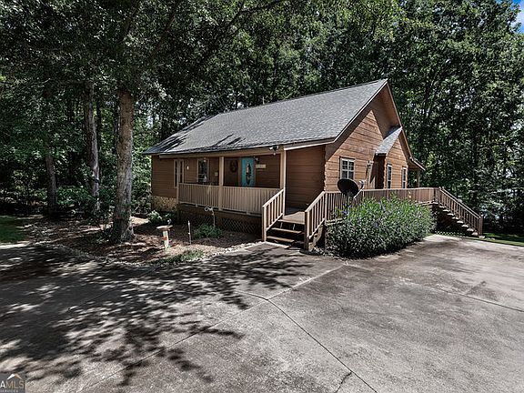 Almost an acre and 1/2 on the lake with a dock, close to I85 and exit #19. This 3 bedroom 3 bath log cabin style home sits on 1.45 acres. The house features an open floor plan, incredible stone fireplace and a primary on the main, and another primary on the lower level. The house has a bonus room upstairs that could be an office, media space or even a bunkroom for the kids, endless possibilities. The lower level offers a huge gathering space, wet bar and entertainment wall. The primary suite on the lower level features a HUGE private bath. Bathroom has a very large walk in shower, a spa soaking tub and a walk in closet. There is a patio off the lower level and a deck off the main level. Both places you can sit and chill, enjoy the lake view or hang out with friends. The out building is 14x18 and is located between the house and the detached garage. Perfect for toy storage, man cave etc. The 3 car garage features finished floors, a fitness room complete with fitness equipment and a washer and dryer. Above the garage is an apartment that is totally separate from the residence. It is a one bedroom one bath apartment. It is currently rented for $700 month. It is a flat walk on a concrete path to your platform dock. This property offers plenty of parking for you, your family, guests and lots of toys. NOTE 1- SAUNA AND ALL GYM EQUIPMENT CONVEYS WITH THE SALE. NOTE 2 - THERE IS A 50 AMP ELECTRIC SERVICE IN THE GARAGE. PERFECT PLACE TO KEEP YOUR RV.