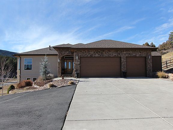 Welcome Home! Your future home is a south-facing, single-family, raised ranch with walkout basement in desired Perry Park Ranch in beautiful Larkspur! Great Mountain Views! Hardwood flooring, rustic fixtures. Enjoy fabulous natural light throughout, from the numerous windows! Main level opens with a foyer, leading to an open floor plan. Family Room with gas fireplace and vaulted ceiling, semi-formal Dining Room, entertainer's eat-in Kitchen, featuring granite-slab countertops, under cabinet lighting, large center island with additional seating x6, stainless-steel appliances. Main-floor Master with sitting area and private spa-like ensuite with custom walk-in closet and skylight. All bedrooms have attached bathrooms. Finished walkout basement offers 9-ft ceilings, rec room, and great room with built-in surround sound-perfect for theater! Cove lighting featured in the entertaining, family and basement bedroom! Easy access to hiking and walking trails! Look no further!