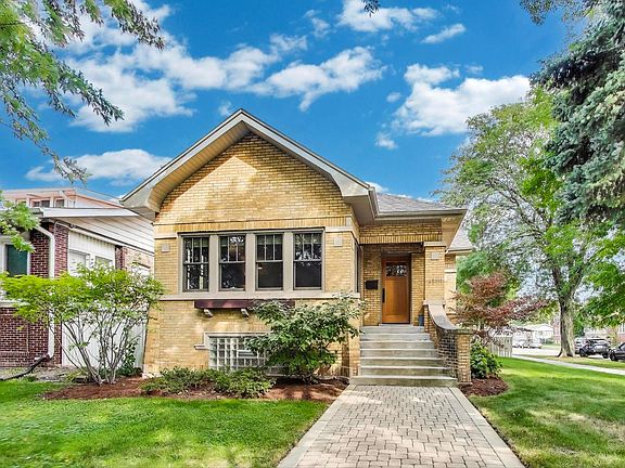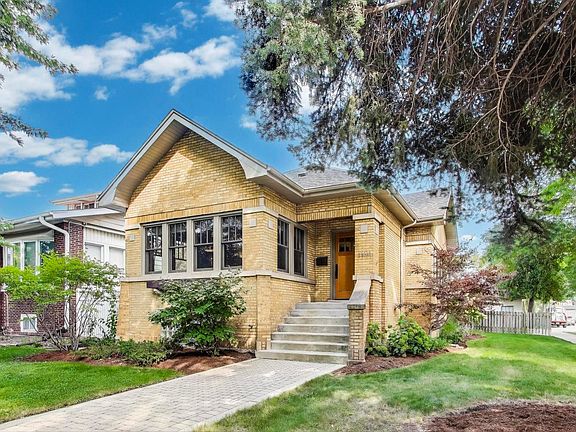 Welcome home to this award winning brick bunglow,located on a corner double lot, west facing, in Portage Park/Mayfair. This home offers 3 bedrooms,3 bathrooms, a Tiki bar,a garage with 2 parking spots and a paved brick driveway for 2 more additional parking spots. The home & the garage roofs were a tear off replacing sofift,facia & gutters with gutter guards 2022-23. The heating is radiant heat throughout and air conditioning is Mitsubishi mini split system. 4 heads that offer A/C & heat throughout the home. On that first cold day of the year turn the mini split on- to warm you up. Hardwood floors through-out with original pickled oak tirm,baseboards & solid core doors in the home. The electrical has been updated to 200-amp service. There is plenty of closets and stroage space throughout the entire home. The windows on the main floor east, west,& south are Pella Architectural Series double hung wood windows. The kitchen is the winner of the 2018 Chicago Bungalow Assn. Driehaus Award for Interior Rehabilitation. It was gutted to the bricks. The cabinets are solid maple inset cabinets with dovetail & soft-close hardware. Custom made walnut island & large spice cabinet. Solid walnut baseboards & window trim with a beadboard ceiling. Quartz counter tops & Subway Ceramics period-correct tile backsplash. Lighting is Schoolhouse Electric light fixtures & LED undercabinet lighting. The stove is Betazzoni 36" wide gas range/oven with hood, dishwasher is Fischer Paykell dual drawer, the refrigerator is Big Chill w/icemaker with reverse-osmosis water filtration. Both the flooring in the kitchen & dining room were replaced with maple. The dining room offers custom designed 2 solid cherry floating credenzas with a glassware cabinet. The lighting is two Louis Paulsen PH 5 pendant lights above the dining table. There is a pantry closet off the dining room. The extra spacious living room has a ventless fireplace with original built-ins and Rejuvenation wall sconces. The primary bedroom is an en-suite with a walk-in closet & updated maple flooring. Bathroom was completely updated in 2025 with tile floor,wainscotting walls,vintage clawfoot bathtub, Kohler pedestal sink & toilet. The second bedroom has the original wood paneling with a large closet. The upstairs landing has an Operable skylight. The first-floor 3rd bedroom is large with a good-sized closet. 1st floor bathroom built in solid walnut vanity with storage shelves,pedestal sink & multi-flush Kohler toilet. The main floor has a middle room currently used as a TV room this could also be used as dining room. You decide! The enclosed back porch was made level,wainscotting, carpet & additional electric outlets added. Now to the lower level. The Tiki Bar is the winner of the 2020 Chicago Bungalow Assn Driehaus Award for Covid Creativity. The bar is equipped with a sink, room for a small frig,window well shelves, floating glassware shelves & seating around the bar. There is a custom floating bench and canned lighting though-out the bar. If you are having a party, there is an easy access door to the lower level that directs you right to the Tiki Bar. The third bathroom is located right off the Tiki Bar & updated in 2025. New oversized tiled shower & custom vanity with sink. The lower level has an incredible workshop with plenty of storage & built-ins. Build & craft away! There is plenty of storage for all your Costco, wine & whatever else you need to store. The washer & dryer also located in the lower level with an old school large sink with plenty of storage cabinets. The backyard is perfect outdoor space for barbecues or just relaxing. The CTA Montrose/Blueline,Metra & 94 are 5-10 mintues away.