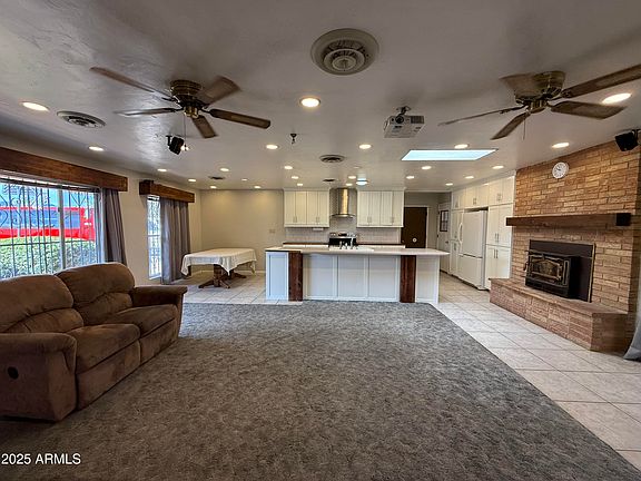 This home has so much to offer! You will not want to miss it! The home has had a recent update to the kitchen and living area to create a modern open great room floor plan. There is a huge island with breakfast bar as well as a breakfast room. There are newer appliances too! You will love the fireplace on the chllly nights that lay ahead! The master suite site at the back of the house and is huge! There is also a retreat area. The master bath was also updated and includes a wonderful deep tub/shower. Bedroom 2 includes a murphy bed! The garage is good sized and included a workshop area in the back. There is also an Arizona room on the north side so it doesn't get too hot. Step out back to a patio area and beautiful producing fruit trees. There is also an RV gate and sprinkler system.