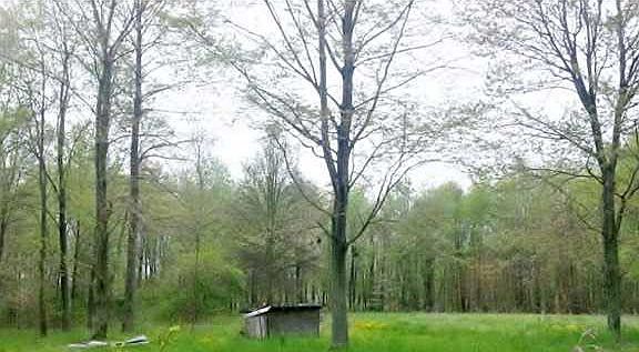 SECLUDED BUILDING SITE: 6 wooded acres with cabin for sale in Newberry, IN. Just miles away from Interstate 69 south of Bloomfield, IN. Pole building has been divided to make 560 sq. ft. living quarters with a room upstairs all set up for LP to power a refrigerator, wall heater and light. The poplar wall studs were cut from trees on the property. Rural water w/outside faucet/pump. Great for getting away from it all, hunting, recreation or a beautiful building site w/no restrictions. Great location close to Crane and Crane Tech Park in Scotland, IN.
