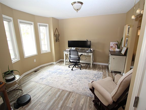 With over 2,100 sf finished, this 2-story home is ready for a new family. A covered porch greets you and upon entry you’ll find a flex room adjacent to the family room perfect for your home office. New LVP flooring throughout entire main level and upgraded carpet throughout. Family room that’s open to kitchen and dining area features fireplace with maple surround and large east-facing windows overlooking the backyard. Kitchen features maple cabinets, stainless steel appliances, & quartz countertops. Laundry room, and 1/2 bath complete main floor. Sliders off the dining area provide access to a deck that features a built-in bar counter overlooking the beautifully landscaped and fenced backyard. There are stairs and a walkway leading to a huge stone patio set up for a fire pit & perfect for relaxing or entertaining. Upstairs features a primary suite and bathroom w/vaulted ceiling, double sink vanity, bubble tub, and walk-in closet. Two additional bedrooms, (one with vaulted ceiling) and full bath complete the upper level. Lower level with daylight windows features family room with built-in theater area, beverage alcove, ½ bath, plus storage room. Garage boasts professional grade epoxy floor. Bonus features: Smart home security system, Nest Thermostat, Water softener, Reverse Osmosis, UV air purifier, & full lawn irrigation system. Close to Sawgrass Park, Crocker Elementary, Prairie Trail Waterpark, The District, shopping, plus easy access for commuters.