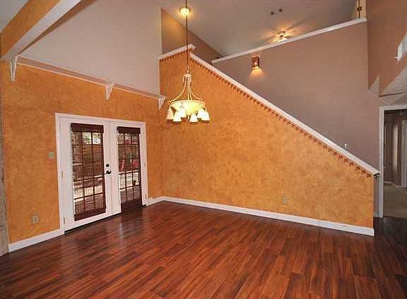 Lovely and spacious treed corner lot setting w/ great street appeal**Open living w/bayed windows for natural lighting & dramatic floor to ceiling stone fireplace w/custom mantle **Formal dining w/french doors to covered patio & high ceiling open to 2nd story**Island kitchen w/tile flooring and great storage at island**Master is downstairs w/private french door access to patio**Bath is spacious w/double sink vanity**2nd living up w/large secondary bedrooms*Loads of improvements made by current ow