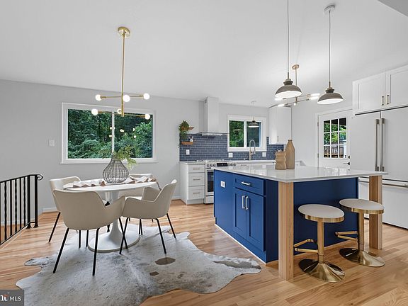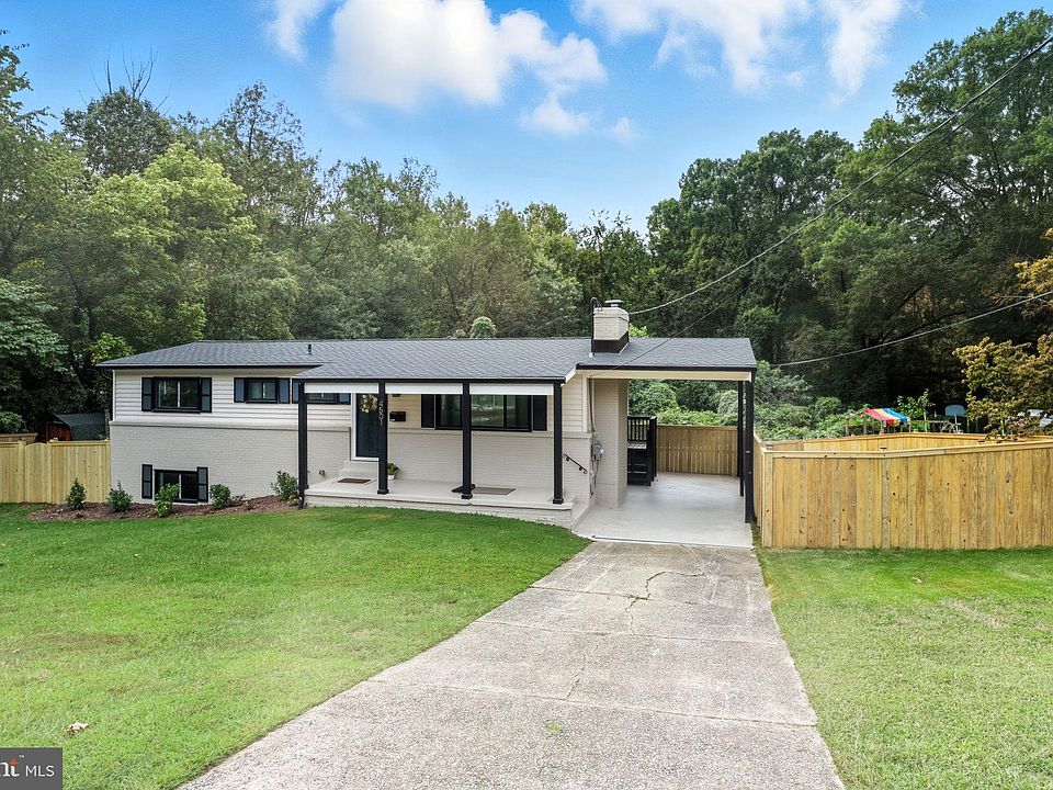 From the inviting front porch to the soaring cathedral ceilings and open-concept layout, this home is sure to impress. The brand-new, designer two-tone kitchen boasts a breakfast bar, floating shelves, a pantry cabinet, quartz countertops, a tile backsplash, and sleek matte white and gold appliances. Throughout the home, you'll find high-end finishes, including beautifully renovated bathrooms, elegant entertaining spaces, a cozy wood-burning fireplace, and preserved original hardwood floors. The main level features a spacious primary suite with a private bath, along with two additional bedrooms and a full hall bath. The lower level offers even more space with a generous rec room that opens to a screened porch, a fourth bedroom, and another tastefully updated full bath. Set on a quiet -acre lot bordering woods on two sides, the fully fenced yard includes a large storage shed, covered carport, and a unique corner location with added parking potential. Major upgrades include a new roof, windows, electrical panel, and more just move in and enjoy! Conveniently located just 0.3 miles to the bus stop and 2.6 miles to the Metro.