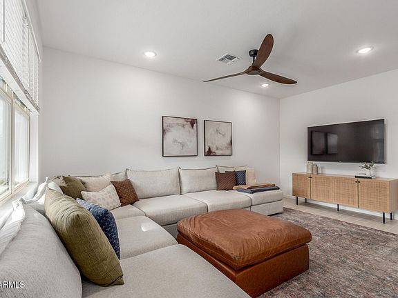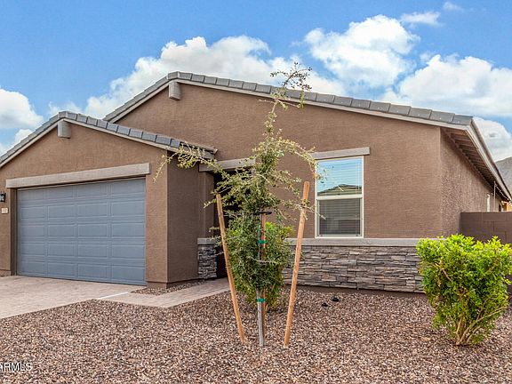 This beautifully upgraded 4-bedroom, 2-bath home is truly better than new and packed with features today's buyers want. The open-concept living, kitchen, and dining area showcases wood-look tile throughout and a standout kitchen with a large island, pendant lighting, gas stove, and walk-in pantry. The primary suite offers a relaxing retreat with a walk-in shower, dual vanity, and a huge walk-in closet, while the secondary bath also includes dual sinks. Enjoy energy savings with spray foam insulation, smart-home features, and other efficiency upgrades. Added value comes from the owned water softener and RO system, custom garage cabinets, and a fully finished backyard with premium turf, an extended paver patio, desert landscaping, and bistro lighting—perfect for entertaining. Ideally located near downtown Queen Creek, Schnepf Farms, Queen Creek Olive Mill, and San Tan Mountain Regional Park with endless hiking and biking. Move-in ready and loaded with upgrades, this home stands out from the rest.