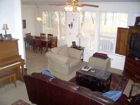 Lovely condo in gated community w/large trees & sparkling pool. Replaced roof & ext paint, March, 2010. Replaced carpet, June, 2010. Convenient location just minutes from Domain & Arboretum. Open floorplan w/cathedral ceilings. Loft works well as an office, 2nd L/R, gameroom, or 3rd bedroom. Each bedroom has its own bath. Master w/walk-in closet & bath w/sep tub & shower. Relax on back patio nestled under large trees. Refrigerator conveys. HOA fees also include water, sewer & trash pick-up. Also for lease