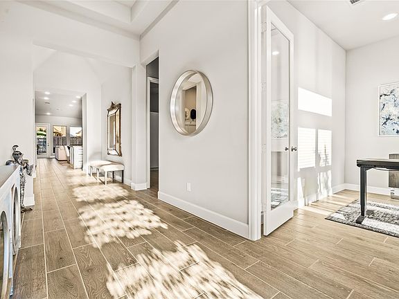 Stunning and beautifully maintained Perry Home meticulously laid out to optimize for a spacious floor plan. The extended entry highlights the 12 ft coffered ceiling. The home office greets you with French doors that pour in natural light. Dining area flows into open family room with wall of windows. Open kitchen offers extra counter space, corner walk-in pantry and generous island with built-in seating space. Spacious primary suite double doors lead to primary bath with dual vanities, garden tub, separate glass-enclosed shower and two walk-in closets. Covered backyard patio. Mud room off garage for your convenience. Garage features extra room on the side for a workshop or storage. Home upgrades include tile floors throughout home, tiled front and back porch, full home generator (Generac 24kw), Lutron light system, full house security system, new bath and kitchen fixtures, new lights and ceiling fans, new kitchen cabinet hardware, murphy bed in guest room, and wood window blinds!