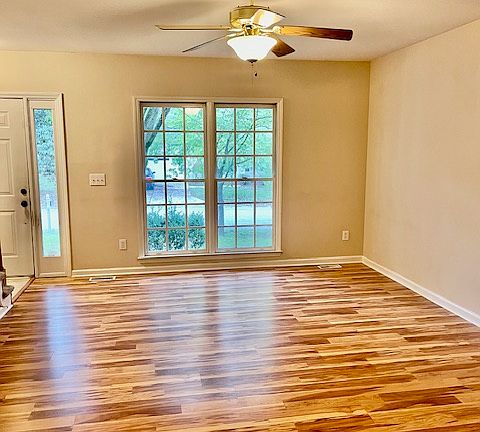 This spacious 4 bedroom, 3 bath home offers the perfect balance of comfort and tranquility. The primary suite is conveniently located on the main level, while 3 additional bedrooms-each with bath access- are situated upstairs. The kitchen features stainless steel appliances, solid surface counter tops, ample cabinet space and a large pantry just steps away. The living room includes a wood burning fireplace, perfect for cool evenings. Beautiful laminant flooring and tile runs throughout with the exception of carpet on the stairs. A large deck overlooks a wooded backyard and pond, creating an inviting outdoor space for entertaining or simply enjoying the peaceful natural setting.