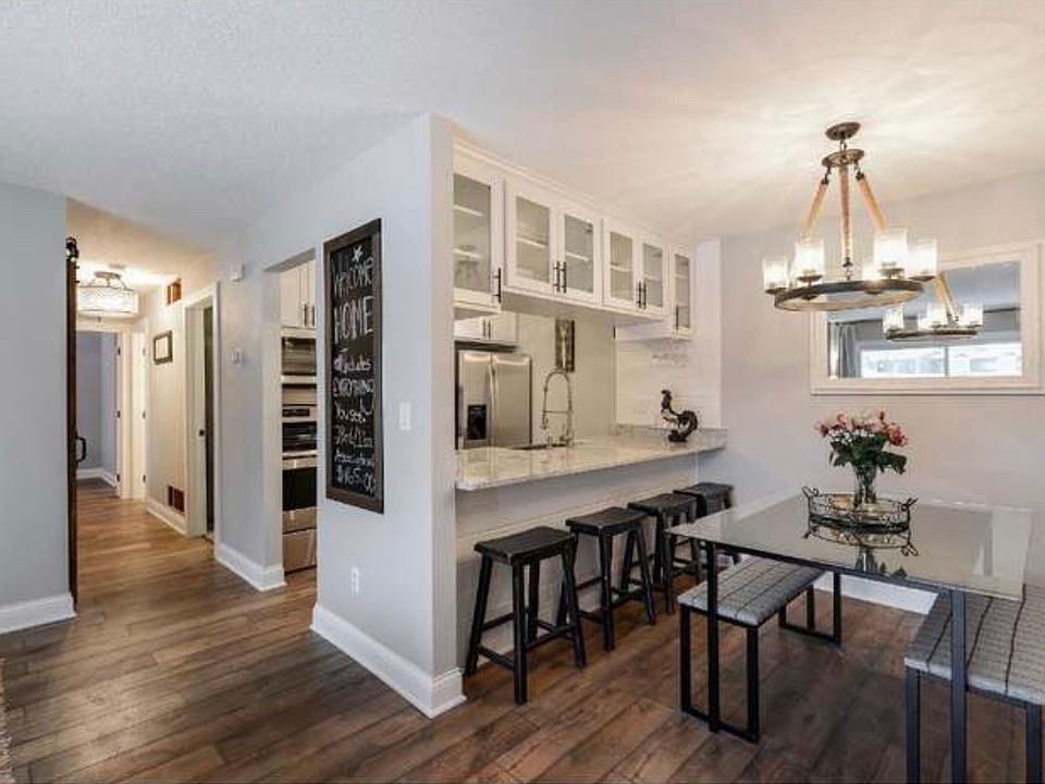 Beautifully Remodeled 2bd/1ba in great Eagan location! Custom Cabinetry, Farm House Sink, Granite Counters, SS Appliances, HW Flrs, Tile Bath, Master Vanity Walk-Through, Huge Master Walk-In Closet, Laundry Room, Private Corner Unity with Patio, Detached Garage. New Windows & Patio Door.