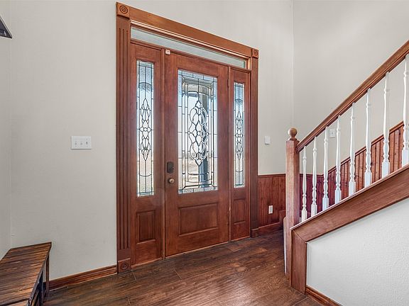 LARGE CUSTOM 4-3.5-3 W-2 LIVING AREAS that SITS ON TWO THIRDS of an ACRE LOT. Enjoy the Country view from the swing on your wrap around front porch. Leaded glass front door leads thru the entry to spaciou living room. Relax in front of the oversized full stone fireplace with a gas starter. Floorplan flows from living area in to large Entertaining Country Kitchen and dining area where family can gather. Plenty of space at the breakfast bar. Deep Walk-in Pantry. Just off kitchen is flex space being used as office or can be craft room,etc.. The flex space includes Laundry area and storage behind the louvored doors. Down stairs Primary Bedroom Suite has sitting area, jetted tub, double size separate shower, walk-in closet and skylight. Secondary bedroom or playroom is also downstairs. Upstairs you will find a generous size Gameroom and 2 large En-suite bedroms w-walk-in closets.