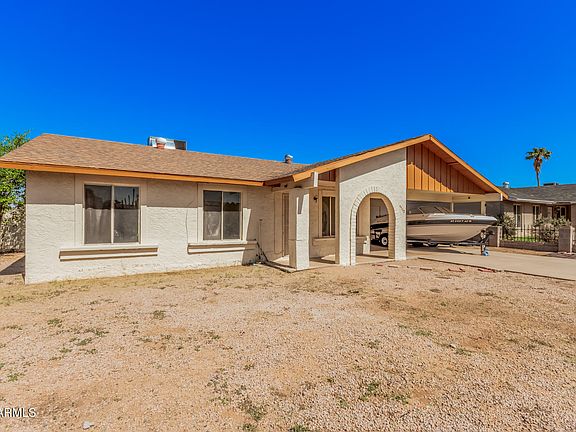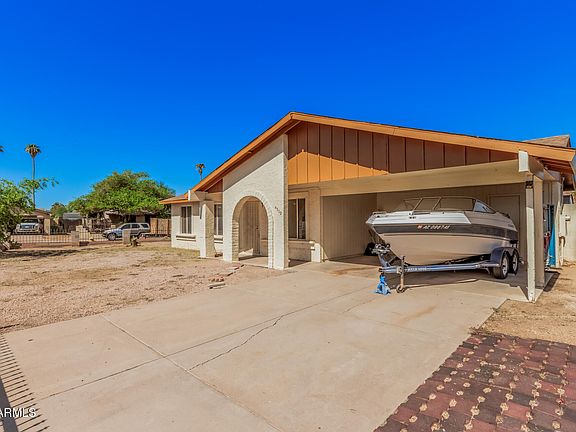 Situated on a desirable corner lot and Carpet allowance included! Welcome to this single-story home featuring 3 beds, 2 baths, and carport parking! Enter to find a bright living room and a perfectly flowing great room enhanced by a floor-to-ceiling brick fireplace. The kitchen offers plenty of honey oak cabinetry and built-in appliances, making meal prep a breeze. Continue onto the carpeted primary bedroom, complete with a mirrored door closet and a private bathroom with a glass step-in shower. Fantastic Arizona room adds extra space, ideal entertaining guests or relaxing year-round. As a bonus, a washer and dryer are included. Large backyard provides an open patio, storage shed, and an RV gate. What are you waiting for? This amazing deal will sell fast!