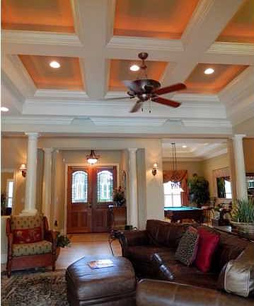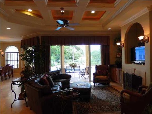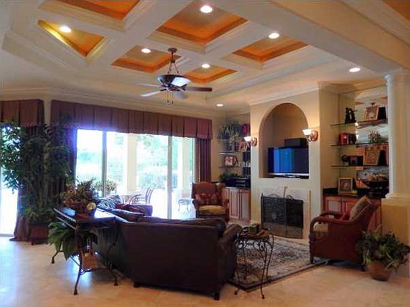 LOOKING FOR LOTS OF SPACE? Interesting architecture & impeccable details set this gorgeous home apart from the others. A dramatic coffered ceiling in the spacious great room grabs your attention immediately upon entering this beautiful 6 bedroom, 5 1/2 bath home! Large arched windows, multiple columns & heavy crown molding provide elegance. A long barrel vaulted ceiling with accent cove lighting provides a beautiful walk space between both sides of the home. Twelve foot, trayed ceilings accent the spacious office and formal dining room. A large breakfast bar as well as a dinette area adjoining the kitchen provide plenty of space for casual dining. The gourmet kitchen, with stainless steel appliances, pantry and beautiful dark granite counters, offers an abundance of storage boasting an entire wall of beautiful Maple cabinetry. The spacious Master suite, with an elegant trayed ceiling, and calming pool views, offers a sitting area, two walk in closets and a luxurious travertine bathr