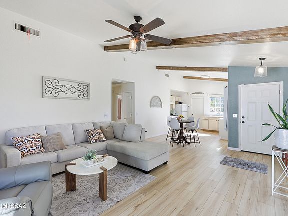 Welcome to this beautifully updated Northwest Tucson gem! This charming 2-bedroom, 1-bath home features stylish upgrades throughout, including new flooring, decorative wood ceiling beams, and a cozy electric fireplace that serves as the centerpiece of the open-concept living area. The high ceilings and natural light create a spacious and inviting atmosphere, perfect for relaxing or entertaining. Enjoy the convenience of a 2-car garage, low-maintenance landscaping, and a quiet location in a desirable Northwest neighborhood near shopping, dining, parks, and quick freeway access.Whether you're a first-time buyer, investor, or looking to downsize, this home blends comfort, character, and convenience -- all in one move-in-ready package!