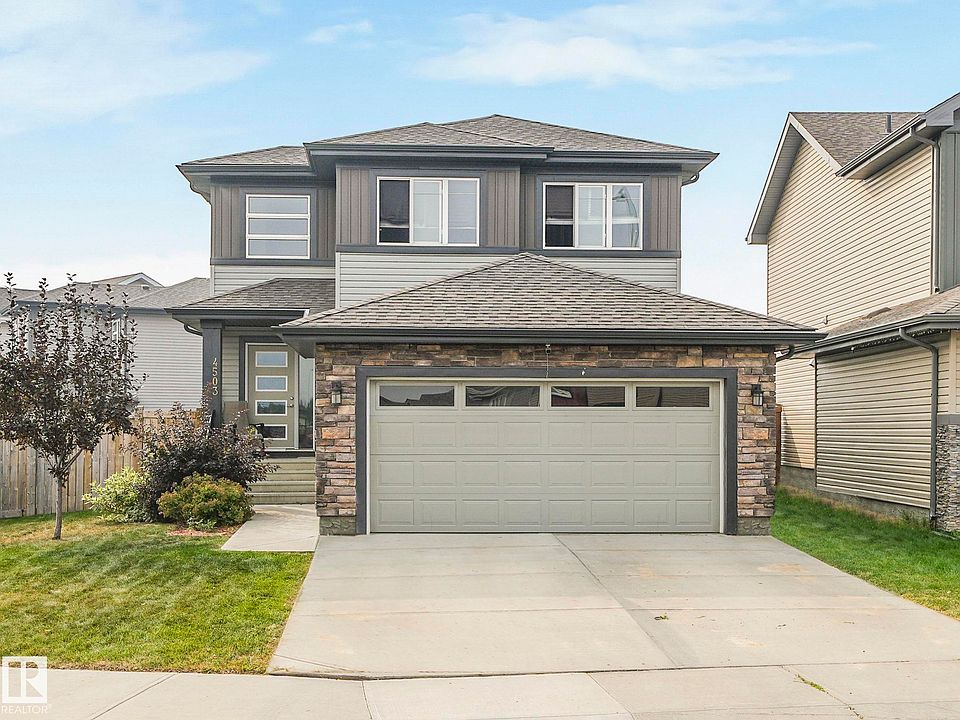 Looking for the perfect property w a built-in mortgage helper suite? This spacious 2-storey on a corner pie shaped lot offers 1,644 sq ft above ground, a legal bsmnt suite + dbl att garage! Flooded w natural light throughout, this home offers an open concept main floor featuring a soaring foyer, walk through coat closet (connecting the foyer to garage/bath area) & a trendy white kitchen w breakfast bar island & spacious pantry (perfect for Costco hauls!). The roomy dining area is ideal for family dinners or game nights & offers access to the deck/fenced yard via large patio doors. The cozy living room is ideal for movie marathons or cheering on the Oilers! Upstairs you can relax in your huge primary suite featuring a WIC & 5 pc spa bath w soaker tub & sep shower! The legal bsmnt suite has its own side entry, sep laundry, full EI kitchen, living room, bed & bath: Perfect for extra income, extended family or a turn-key investment. All this w/in walking distance to schools, parks, shops, and restaurants.