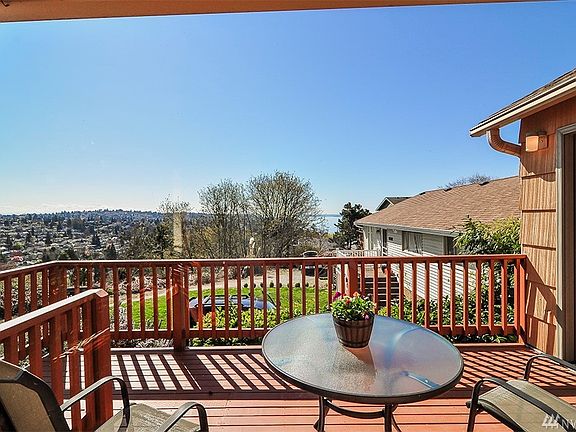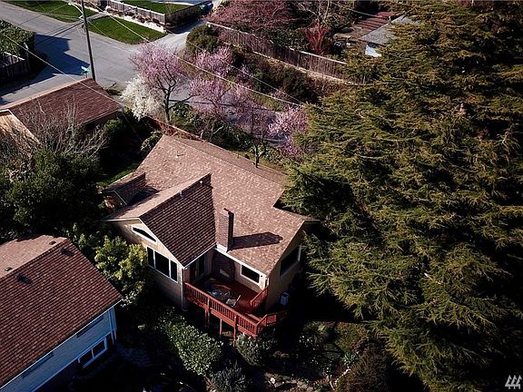 Charming 1927 bungalow located in highly desired Genesee Hill! Fabulous southern exposure bathes home in natural light! Excellent Puget Sound and spectacular Mt Rainier views. Situated on private corner lot. Serene private fenced backyard with mature plantings & trees. Features cove ceilings, archways, french doors, cool original tiled fireplace & hardwoods. Nice kitchen opens to fantastic family room and view deck. Newer tiled bath. Good bsmt and large 2 car garage. Lives large with Great Vibe!
