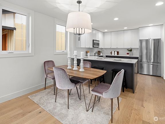 New Construction in community of 3 new homes! Lovely detached 2 bedrooms/2.25 bath with tasteful designer choices throughout. Open living/dining with wide plank flooring. Large kitchen offers Fisher & Paykel appliances, Quartz counters, pantry and breakfast bar. Main floor powder room. Hardwoods continue up the stairs which offers vaulted ceilings in both bedrooms, two ensuite bathrooms, custom closet shelving and convenient upper level laundry. EV ready off-street parking plus secure storage. Mini-splits for heat & AC. Private fenced yard. Excellent Matthews Beach location!