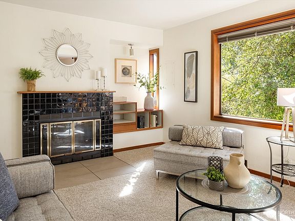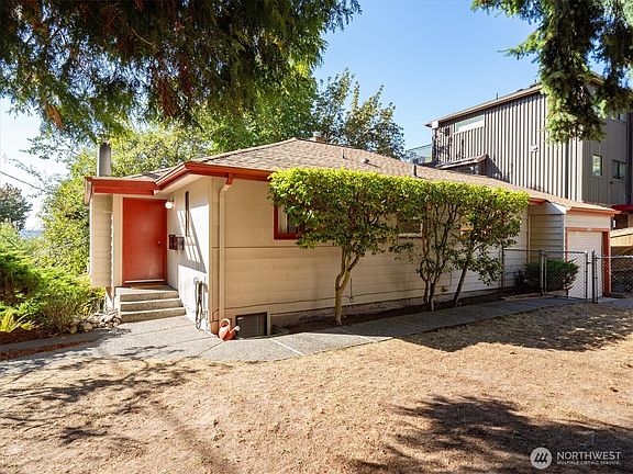 Tranquil woodsy cul-de-sac location! Quiet! Feels a world away yet is walking distance to some of the city's best amenities. Live up, rent down. Unit A - Sunny west facing living room and kitchen. Fireplace, deck, large kitchen with dishwasher plus lots of counter space. New carpet and flooring throughout. Two BR on main. Primary bedroom has a walk-in closet with additional storage space. Attached garage has a workbench & shelves. Shared laundry with utility sink & storage. Unit B - one BR garden apartment has own entry and patio. Sunny west facing living room w/full size picture window. Bright kitchen with eating space and new flooring. Full bath. 2 blocks from the 44 to U.W./Ballard as well as the 5-express to downtown. Easy rent!