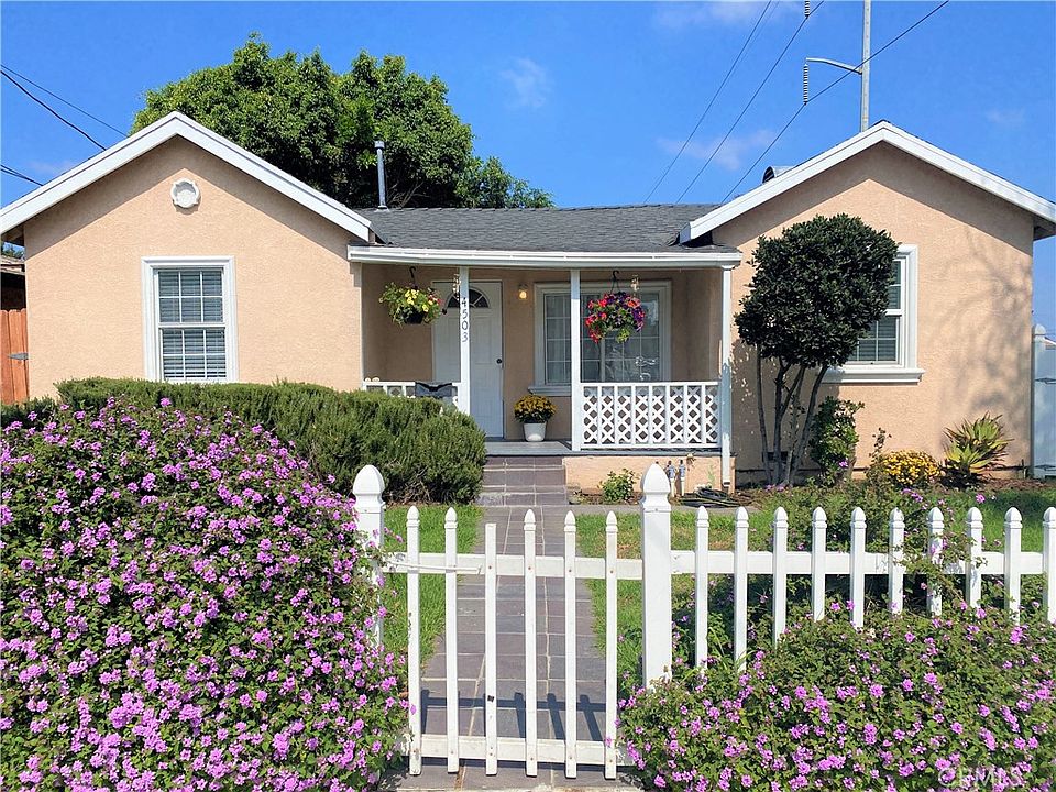 This charming 3 bedroom and 2 bathroom home is ready to move right in. Located in the best area of South Lawndale near Redondo Beach on a corner lot and across from William Green elementary school. This cozy home has a grass front yard leading up to a covered porch entry. The great floor plan includes a living room, dining area and kitchen with granite countertops, stove, dishwasher, built-in microwave and a stacked washer and dryer inside. The home has new paint, wood laminate flooring in main areas, recessed lighting and brand new carpets in all three bedrooms. The two front bedrooms share a full bathroom and the Huge Rear Master Bedroom has a sliding door to the year yard and an en suite full master bathroom. The nicely landscaped front yard has an Avocado tree, flowers, grass, entry path and a delightful private country white picket fence for butterfly watching. The usable enclosed rear has a grass yard, walkway, storage shed and vinyl fencing - great for a pet. Conveniently located and walking distance to the South Bay Galleria for quick shopping or that favorite movie, easy nearby freeways for commuting, schools and parks or a bike ride to the beach.