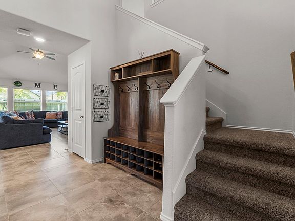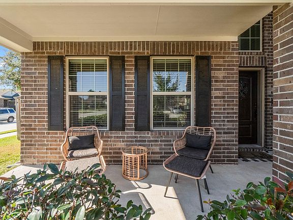 Lennar home on corner lot in Country Colony offering 3 bed, 2.1 baths and great curb appeal with charming front porch and 2-car attached garage. Step into a 2-story foyer that flows into the dining room and then into a bright, open-concept living room with high ceilings and a wall of windows overlooking the backyard. The island kitchen features a gas stove/oven, granite countertops, backsplash, and connects to the breakfast room. The primary bedroom boasts designer paint with an accent wall, plus an ensuite bath with double sinks, soaking tub, separate shower, and walk-in closet. Upstairs offers two secondary bedrooms, a full bath, and a spacious game room. Attic space above the garage is mostly floored for extra storage. Outside, enjoy a covered patio with extended deck, storage shed, raised garden beds, a brick fireplace, sprinkler system, and plenty of room for a pool. Additional features include ceiling fans, 2-inch blinds throughout, and a water softener. Home has never flooded!