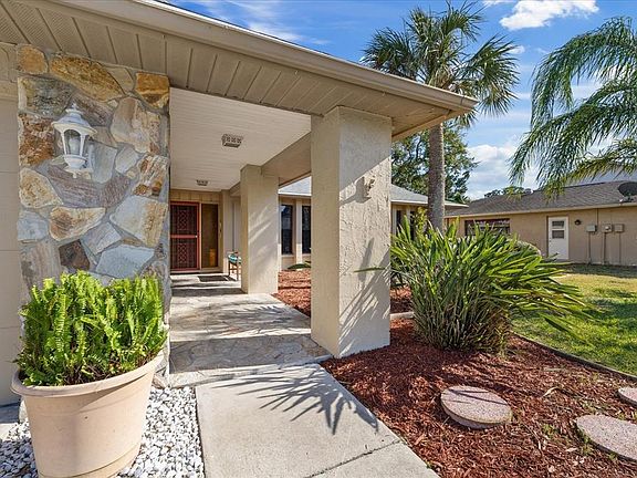 One or more photo(s) has been virtually staged. Welcome to this beautifully and NEWLY UPDATED and freshly painted home in the highly sought-after Gulf Harbors Woodlands community! - F! Enjoy 3 spacious bedrooms and 2 full baths, this 1,906 sq. ft. residence offers NEW TOP QUALITY AC in 2024, a bright open floor plan with luxury vinyl and tile flooring throughout. Transferable Flood Insurance Policy, and a NEWER ROOF (2020). The stylish kitchen boasts BRAND NEW STAINLESS APPLIANCES, whole-house water softening system, Cambria Quartz custom counters, breakfast bar seating, NEW Cabinets with roll out shelving and a spacious, convenient pantry. This is a split floorplan, with the primary suite located on the opposite side of home, apart from 2 other bedrooms and full bath. This spacious primary features a walk-in closet and an elegant ensuite bath with modern tile shower, space for vanity table with mirror or linen cabinet. Primary also has unique direct access door from garage. Enjoy peaceful OLD STYLE relaxed Florida living on the enclosed rear lanai while enjoying a beautifully landscaped yard with tropical vegetation for privacy. Additional highlights include: indoor laundry room with sink, 2-car garage, irrigation system, and plenty of natural light from vaulted and tray ceilings. The $60/month, Deed Restricted HOA fee provides peace of mind and includes these community amenities: a sparkling pool with amazing SUNSET VIEWS, pickleball/tennis courts, and PRIVATE BOAT RAMP with direct DEEP WATER Gulf access. Members Only benefits for The Woodlands residents include RARE opportunity to join Gulf Harbors Beach Club( $200/yr) and (for another annual fee$)Gulf Harbor Yacht Club(restaurant/events/social activities)No boat ownership required! Conveniently located near downtown New Port Richey, restaurants, shopping, and popular public beaches and parks. This home combines affordable, comfort, style, and an unbeatable coastal lifestyle—schedule your private showing today!