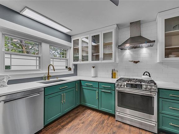 You'll find gleaming hard wood floors in the upstairs living room. The heart of the home is the kitchen, featuring birch, dovetail, soft close drawers and a Cafe Series stove and range—a true culinary centerpiece perfect for the home chef or anyone who loves to entertain. The updated electrical service offers peace of mind and modern convenience throughout this SMART home with features that can be controlled from your phone. It even has a tankless hot water heater. The fully finished basement is perfect for generational living including a separate entrance to the basement level with a bedroom, bathroom, living room, wet bar, and second laundry room!