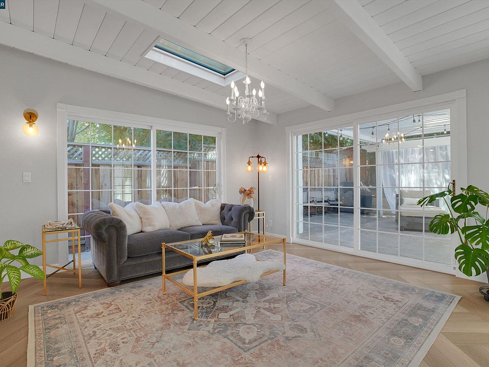 Step Inside Your Dream Home! Discover this beautifully maintained EAST FACING residence in one of the area’s most desirable locations. With 2,200 sq. ft. of living space, including a stunning sunroom addition, this home blends comfort and style. Rich hardwood floors flow through the main living areas, while plush carpeting warms the bedrooms. The gourmet kitchen features custom crown-molded cabinetry, granite countertops, an Amada cooktop island, trash compactor, water softener, and elegant plantation shutters. The sunroom is a bright retreat with stylish lighting—perfect for morning coffee, relaxing evenings, or entertaining. Skylights fill the primary suite, secondary bedrooms, kitchen, and hallway with natural light. The spa-like primary bath showcases piedrafina marble in the shower and on countertops with gold Kohler faucets. The suite also includes a built-in office for work or projects. A large storage shed adds convenience, while the prime location offers access to Muirwood Community Park, Interstates 680/580, BART, and an HOA pool and clubhouse. Walking distance to shopping, hiking trails, and award-winning schools. This home is perfect for both peaceful living and entertaining.
