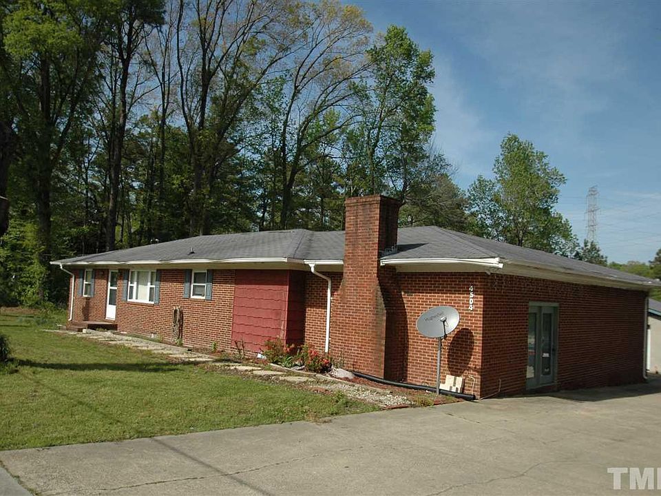 Solid 4 bedroom, 2 bathroom mid-century brick ranch home on almost 1/2 acre. Convenient side entrance from poured concrete driveway into 2-level family room/home office. Beautiful red oak hardwood floors. Kitchen has knotty pine cabinets & attached dining room. 3 detached outbuildings include 2-car garage, 1-car shed & metal storage building. Ideal for home business or large family. Out in the County but close to Town- 2.5 miles North of I-85 & 8.5 miles to Downtown Durham. Conveys as is, where is.