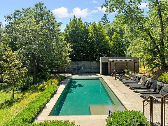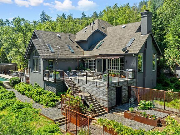 Where modern luxury meets natural beauty, this quiet and ultra-private, creekside sanctuary offers the perfect blend of elegance and tranquility. Set on 3.84 lush acres, this impressive estate includes a 3,595 sq. ft. main residence, a 2,675 sq. ft. barn with incredible flex space, and a gorgeous pool area, all sited just up the knoll from a seasonal creek that flanks the property. The thoughtfully updated 4-bedroom, 3.5-bath home features a chef's kitchen with top-of-the-line appliances, a large island, and a custom coffee and wine bar, ideal for entertaining or enjoying quiet mornings. The living and dining areas provide an intimate ambiance, while the vaulted wood-beamed family room showcases a wood-burning fireplace, soaring windows, and seamless access to an Ipe wood deck. The first-floor primary suite offers vaulted ceilings, a spa-like bathroom with soaking tub, and direct access to the outdoor shower and pool. Outside, unwind beside the 50' x 15' heated pool, harvest from your own enclosed garden, or explore the peaceful creekside setting. Located just down the street from Hess Winery and under 6.5 miles to Whole Foods and Browns Valley Market, this property is the ultimate Napa Valley retreat.