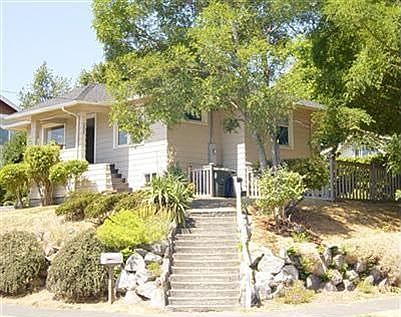 Charming bungalow on a corner lot, set high off the street with a partial sound and territorial view. Very private with great light from the sun. Go up and have a smashing view. Period details including five panel doors, wainscoting, fir and hardwood floors. Large living room with fireplace. Remodeled bath. Spacious kitchen with breakfast nook. Unfinished basement with utility area, storage and 2 partially finished rooms. Updated electrical & plumbing. 3 min walk to the new Rapid Ride Station.