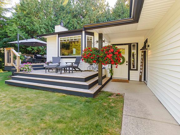 Discover this beautifully updated split-level home in Brookswood Area, showcasing a striking white-on-black design. Enjoy new vinyl siding and energy-efficient double-pane windows throughout.Inside, the spacious living area features updated engineered flooring with two cozy fireplaces. The chef’s kitchen boasts butcher block countertops, stainless steel appliances, and soft-close cabinets with slide-out drawers. The updated laundry room, with mosaic floor coverings is stylish and fresh. Step outside to the expansive 750 square feet of decks, perfect for entertaining and enjoying the landscaped yard and BBQ area w/ an outdoor TV. With two gas fireplaces, an AC Honeywell home system, and a double car garage, this home combines modern comfort with an inviting charm.