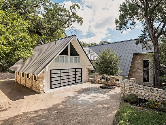 Backed by a tree-lined creek and set on nearly half an acre, this 5,000 sq ft residence has been transformed with over $800K in renovations. The result is a one-of-a-kind home that blends timeless craftsmanship in a setting that feels connected to nature while still close to everything Austin has to offer. Step through custom steel entry doors into a light-filled interior where walls of windows frame the landscape and create a treehouse-like atmosphere. At the heart of the home, soaring ceilings and a striking atrium anchor the living spaces. Just off the atrium, a massive private office makes an ideal executive workspace. The chef’s kitchen features white oak cabinetry, Dacor appliances, and a 36-inch range, designed for both entertaining and everyday living. The main-level primary suite is designed as a sanctuary, featuring his-and-hers bathrooms/closets plus a private outdoor shower framed in Brazilian hardwood. Upstairs are four additional bedrooms, each with its own dedicated bathroom. One serves as a spacious playroom/home gym, while another - set above the garage with its own staircase, wet bar, and sitting area - functions beautifully as a private mother-in-law suite, offering ideal accommodations for long-term guests or family. Every upgrade has been considered - from handmade tilework, plaster fireplace, and European lighting to level-5 smooth drywall, new windows, smart-home EcoBee HVAC with zoned climate control, and laundry on BOTH levels. Outdoor living has been completely reimagined. The pool was freshly plastered and expanded with a large baja ledge, the expansive pool deck was rebuilt, and the backyard redesigned with brand-new turf, fencing, an outdoor kitchen, custom garage doors, a new metal roof, professional crawlspace waterproofing, and lush landscaping. With 5 bedrooms, 5.5 bathrooms, a showcase office, this home offers a rare combination of scale, high-end finishes, and natural surroundings - just minutes from downtown Austin.