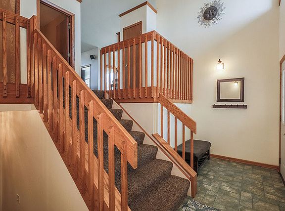 CUSTOM BUILT HOME IN 2000. UNIQUE HOME WITH CATHEDRAL CEILINGS AND LOTS OF NATURAL LIGHT. SLIDING GLASS DOORS FROM MASTER BEDROOM AND GREAT ROOM TO HUGE WRAP AROUND DECK. LOWER LEVEL HAS 2 BEDROOMS, FULL BATH, AND REC ROOM WITH SLIDING GLASS DOORS TO PATIO. NEW ROOF IN APRIL 2016. LOWER LEVEL AND GARAGE HAVE RADIANT HEAT IN FLOORS. FANTASTIC PROFESSIONALLY LANDSCAPED LOT. FIREPLACE WITH CUSTOM MANTLE. APPROX. 3250 SQUARE FEET ON 2 LEVELS. CURRENTLY ON SEPTIC. SEWER AT STREET.