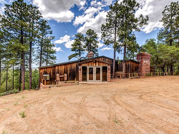 Almost 10 acres with complete privacy on top of the mountain in the tall pines with breathtaking views plus a guest house. Main house has 3 bedrooms, 3 baths plus 3 fireplaces with lots of wood and natural stone throughout. Come watch the sunsets on the custom deck along the whole back and side of the house with amazing views of forest, Thumb Butte and city. 2 car garage has extra 400 sqft carpeted room for game room or storage plus a large workshop on the back. Separate 1224 sqft guest house has new flooring and is 2 bedrooms, 1 bathroom with a deck that could be used for extra income as rental or airbnb. Lots of flat area for parking all your toys and RV. Secluded and quiet living with town only a few miles away.