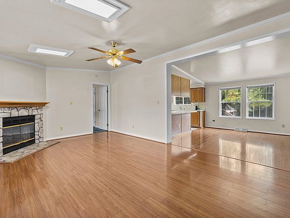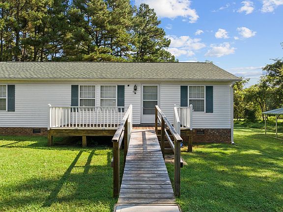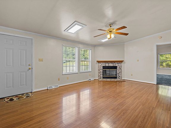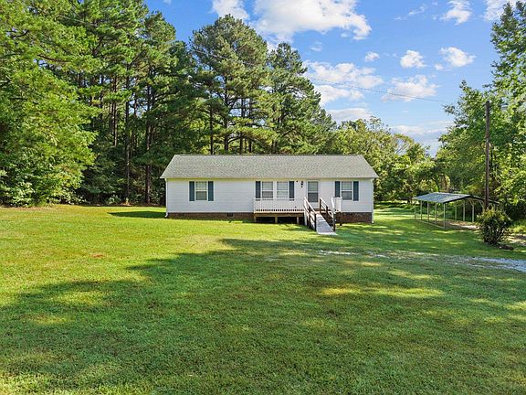 Charming one-level Rougemont home on 1-acre lot. 2 bedrooms, 2 full baths, stone fireplace, wood-like floors, and ample windows. Large back deck for outdoor living. Carport included. Enjoy rural tranquility with modern comforts.