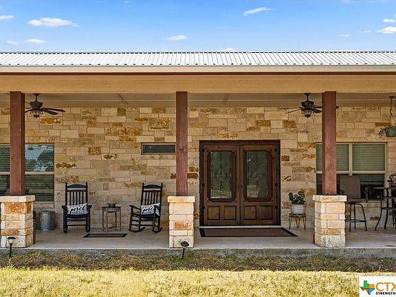 A divine country home with all the perks! This 3 bedroom 2 bathroom custom home w/metal roof on 5 acres also includes a guest home and workshop. The fully fenced property welcomes you through a custom automatic gate to the stone home with lovely front porch. High ceilings, open floor plan, no carpet, and neutral colors throughout. Custom cabinets in the kitchen with an 8 foot island, gas range, granite counters, large pantry, and an abundant of cabinet space. Don't miss the special touches throughout--the swinging laundry room door, custom lighting, antique double screen doors, and stone fireplace are one of a kind! Double barn doors lead to the primary suite, bathroom, and walk in closet. Just off the open living areas are two additional bedrooms that share a bathroom w/ a walk in shower. The main home has a 2 car carport. The guest home is 1 bed/1 bathroom and includes a full kitchen, front porch, and covered parking--a great generational living option or income producing rental. The workshop is 30'x40' feet with 22'x63' lean-tos for additional storage. There's also a full bathroom and several storage rooms that have electricity. This property is serviced by a well but also includes a 5000 gallon storage tank for rain water collection with a whole home UV filtration system. The mature post oaks offer so much shade and the pond is stocked with bass, catfish, and perch. You'll be just minutes to Lockhart, Bastrop, and Austin from either FM 713 or Old Colony Line Road off HWY 20. This is a one of a kind gem that been manicured and maintained for the pickiest buyer. Welcome Home!