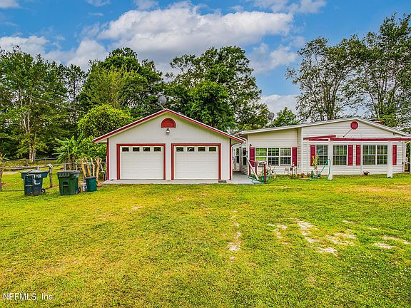 Enjoy the tranquil country setting on nearly 5 acres of land! This spacious 3 bedroom, 2 bathroom home comes complete with plenty of room including an oversized 2 car garage, workshop, barns, and storage sheds. No HOA restrictions or no CDD fees. Conveniently located near River City Marketplace which offers shopping, dining, and relaxation. Next to Four Creeks State Park & Wildlife Management area, and minutes away from historic Callahan and Yulee with highly rated schools.Sold in conjunction with MLS # 1113702 for a total of 11 acres that are subdividable. Buyer to verify.